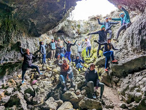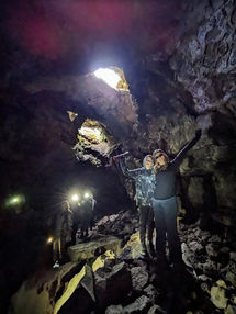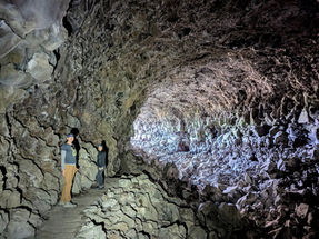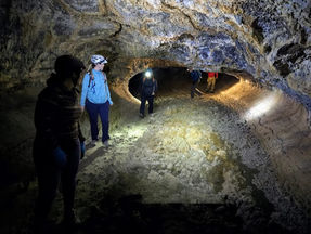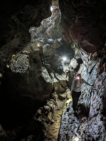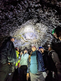 Activities include climbing up and down stairs inside the cave, crouching in short sections, exploring in the dark caves and lava tubes with headlamps and flashlights, and light rock scrambling. We will also hike uphill to a lookout vista.