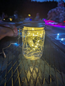 Movie night at basecamp. Our movie will be projected onto a large 10 foot screen